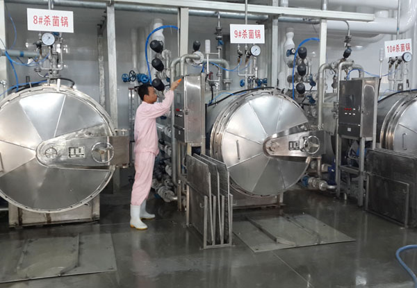 3、電腦程控全自動 ,恒溫、恒壓,回轉式,噴淋風扇內循環等系列臥式殺菌鍋。